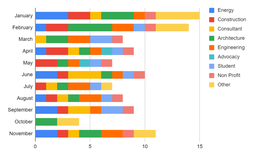With the transition to remote work, our events transitioned also. As our events mirror what is needed in the community, we held three events in response to the pandemic: How Sustainable Are Covid-19 Mitigation Strategies for Buildings?, Boost Organization Resilience: People, Processes, Places Thriving in a Time of Crisis, and Managing Change in Crisis. These were together the highest attended events of the year. We also held virtually our rescheduled Women in Green event from 2019 and the Building Tech Forum. The Green Building Showcase was missed this year, and cannot wait for its return this Fall.