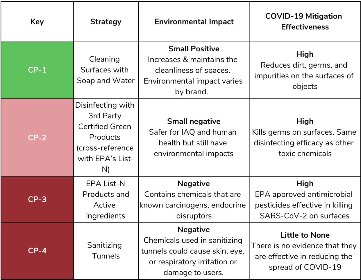 Figure 2: Green Seal has identified and organized their own list of COVID-19 cleaning and disinfecting strategies. (Source: https://greenseal.org/about/blog/how-to-safely-disinfect-for-coronavirus)